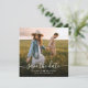 Modern simple elegant handwritten script overlay one photo wedding save the date announcement card. Chic minimalist design template feature 1 photo and elegant cursive hand lettering typography or calligraphy script „Save the Date” text overlay. Little love heart motif between the names. At the backing your save the date pre-made message. If you need help or matching items, please contact me.