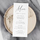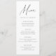 Modern menu script minimalist design in charcoal black and white, simple and elegant. Great wedding menu cards for modern wedding and other events.