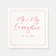 Elegant yet modern simple and minimalistic design with name in a pink fancy script napkin. Mr. & Mrs. with last name and date of wedding. Just gorgeous.
