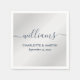 Personalised navy blue and silver wedding paper napkins with a modern script font. Easily personalise online with your wedding details. Matching items available to complement these minimalist, yet elegant navy blue and silver wedding paper napkins.
