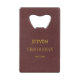 This elegant modern script personalised groomsmen credit card bottle opener is the perfect gift for your groomsmen. This bottle opener can be customised with each groomsman's name, making it a thoughtful and unique keepsake. Its compact size allows for easy carrying in a wallet or pocket, ensuring your groomsmen will always have a stylish tool on hand for opening their favourite beverages. Give your groomsmen a gift they will truly appreciate and cherish for years to come.