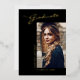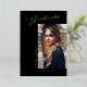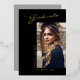 This real foil, modern elegant graduation announcement card, features design elements of modern text fused with elegant calligraphy script. The graduates horizontal photo is artfully placed on the front of the card while the back of the card offers personalised text spaces for information about the graduation and future journey. Backgrounds are black on the front and silver grey on the back or easily customise them to colours of your choice. To see more items like this, visit my store here at "www.Zazzle.com/LakeViewCardCo". Thanks