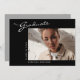 This modern elegant graduation announcement card, features design elements of modern text fused with elegant calligraphy script. The graduates horizontal photo is artfully placed on the front of the card while the back of the card offers personalised text spaces for information about the graduation and future journey. To see more items like this, visit my store here at "www.Zazzle.com/LakeViewCardCo". Thanks