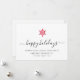 Modern minimalist business holiday card with elegant script calligraphy reading HAPPY HOLIDAYS under a printed red foil snowflake. Below is space for your custom message as well as additional space on the back over your corporate logo.