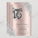 A modern, chic and glamourous Sweet 16 with silver glitter drips on rose gold background.