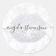 Pretty design featuring faux silver glitter, white marble fixture and elegant calligraphy font.