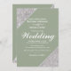Elegant modern silver glitter on sage green with white script Wedding Invitation
