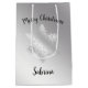 Elegant modern silver Merry Christmas snowflake Medium Gift Bag