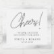 Modern elegant faux silver foil "Cheers!" lettering with silver glitter frame, personalised bottle label. Personalise text, customise font style, colour, and size.
