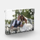 Beautiful personalised photo block with elegant snowflake frame. Personalise the product with your favourite wedding photo.