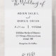 This elegant modern song choice wedding all in one invitation is perfect for your modern minimalist wedding. This design features black simple calligraphy with a white neutral background to match your classic traditional wedding or minimalist boho wedding in the spring, summer, fall, or winter. Please feel free to reach out to us with any questions about this design.