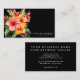 Make a tropical bold and sophisticated first impression with this watercolor fashion modern floral business card featuring a dramatic black background. Delicately painted floral hibiscus elements in pink, yellow and orange, and greens pop vividly against the dark canvas, blending artistic charm with modern elegance. The minimalist yet eye-catching layout offers ample space for your name, profession, and contact details—balancing creative and professional effortlessly.