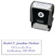 Easy to edit clear self inking stamp with a couple's name and street address you can change by clicking on the "Personalise" button above. Perfect for the return address on thank you cards, we've moved notifications, and letters.