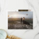 Modern and clean photo templates, front and back, with elegant custom "Thank You" typography graphic (colour can be changed in design editor). Back also features editable text fields and an optional Christmas floral graphic.