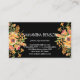 This is a pretty, modern yoga instructor business card with bright and colourful vibrant colours hand painted floral illustration background design with pink, orange, yellow. This is signifying holistic health and wellness. It is a beautiful elegant yoga profile through business cards.