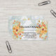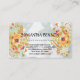 This is a pretty, modern yoga instructor business card with bright and colourful vibrant colours hand painted floral illustration background design with pink, orange, yellow. This is signifying holistic health and wellness. It is a beautiful elegant yoga profile through business cards.