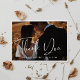 Express your gratitude and thank your guests for their presence and beautiful gifts with this customisable photo card with a modern typography. Just add your favourite wedding picture, change the colours and write your own thank you message.