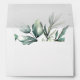 Our wedding invitation envelope features modern purple calligraphy combined with an elegant watercolor greenery arrangement. Add your address for easy mailing to all your guests.