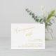 Simple gold foil Wedding Enclosure Card with "Honeymoon Wish" in an elegant handwritten script at the top left along with your personal message in right alignment in the lower right corner. The chic hand lettering adds a romantic touch to this minimalist design. This enclosure card is a nice way to politely ask your guests for a contribution towards your honeymoon fund instead of a gift.