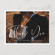 Express your gratitude and thank your guests for their presence and beautiful gifts with this customisable photo card with a modern style. Just add your favourite wedding picture, change the colours and write your own thank you message.