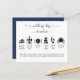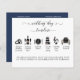 Elegant modern timeline program. Ability to select customise and change navy blue background colour to another colour matching your theme. Personalise dinner image with your own initials. Use of modern hand written calligraphy details. Images in elegant black, grey and taupe tones. Ability to customise information on the back to suit your needs.