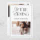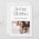 This design shows off 2 of your favourite engagement photos. The front of the post wedding reception invitation features 'We're Eloping' in a gorgeous, modern mixed typography typeface, followed by your names, and your engagement photo below, which are easily personalised with this template design.