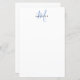 Elegant Modern White Blue Script Monogram Stationery Paper. An elegant blue script monogram combined with a clean black san-serif font makes for a contemporary look.