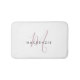 Elegant Modern White Blush Pink Script Monogram Bath Mat