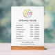 This sleek acrylic sign displays your business opening hours in a modern and minimalist style. Perfect for corporate branding, it’s a simple way to keep customers informed. Customisable with your text, this sign is ideal for small businesses looking to enhance their promotional presence. Elevate your customer experience with this stylish, branded solution!