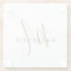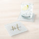 Elegant Modern White Gold Script Monogram Glass Coaster