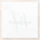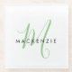 Elegant Modern White Green Script Monogram Glass Coaster