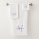 Elegant Modern White Lavender Script Monogram Bath Towel Set