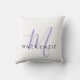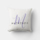 Elegant Modern White Lavender Script Monogram Cushion