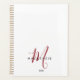 Elegant Modern White Red Script Monogram planner. An elegant red script monogram combined with a clean black san-serif font makes for a contemporary look.