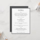 This modern wedding menu design brings a clean, elevated look to reception tables and place settings. The minimalist layout and refined typography create a polished presentation that complements contemporary and classic wedding décor. Ideal for couples hosting a thoughtfully curated dinner, it pairs beautifully with coordinated invitation suites and day-of stationery. A timeless choice for elegant, detail-driven celebrations.