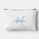 Elegant Modern White Sky Blue Script Monogram Accessory Pouch