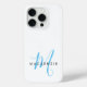 Elegant Modern White Sky Blue Script Monogram Case-Mate iPhone Case
