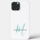 Elegant Modern White Teal Script Monogram Case-Mate iPhone Case