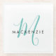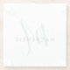 Elegant Modern White Teal Script Monogram Glass Coaster