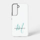 Elegant Modern White Teal Script Monogram Samsung Galaxy S22 Case