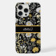 A vibrant and intricate floral pattern featuring a variety of white and yellow flowers on a black background. The piece evokes a sense of nature, beauty, and vintage charm.