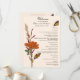 A perfect burnt orange dahlia with wheat stalk and ruby botanical adorns this blush wedding program with monarch butterflies. The program gives all the important details of your special day. This nature inspired fall wedding stationery suite is both rustic, and chic. The collection exudes elegance and natural beauty. Let this harmonious autumn blend of colours and design create an unforgettable celebration.