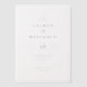 This wedding invitation features a minimalist and elegant design with a clean, vertical layout that emphasizes simplicity and sophistication. The monochromatic colour palette of black text on a white background ensures high contrast and readability, while the modern serif typography adds a touch of formality. The absence of decorative motifs highlights the focus on clarity and elegance, making it perfect for couples seeking a refined and timeless look for their special day.