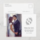 Elegant Monogram Black and White Photo Thank You Postcard. Click the personalise button to customise this design.