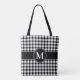 Elegant Monogram Black And White Plaid Tote Bag.