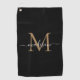 Black Gold Monogram Elegant Girly Script Name Golf Towel