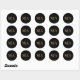 This round sticker has a sleek, modern design with a black background. At the centre, large, Gold-coloured initials are prominently displayed, giving a bold and personalised look. Between the initials, there is a vertical line of small white text, which adds a refined touch. Below the initials, a line of smaller, uppercase white text provides space for custom wording. The minimal colour palette of black, gold, and white creates a striking contrast, lending the design a sophisticated and professional feel.