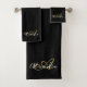 Elegant Monogram Black Gold Script Name Bath Towel Set