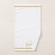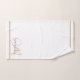 Personalised elegant monogram with the gold initial in a graceful script swash font, and name bathroom towel set gold borders. Refresh your bathroom decor with a minimalist typographic style.