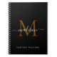 Elegant Monogram Black Gold Script Office School Notebook